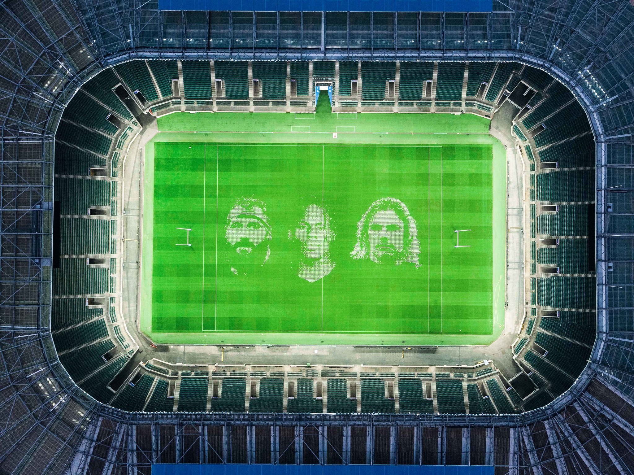The 7000m squared portrait (the UK’s biggest outdoor painting) covered the entirety of the Twickenham pitches.